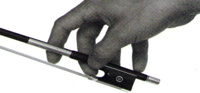 Place the bow between the middle finger and the thumb. Let the other fingers curve around the stick. Make sure the tip of the little finger rests on top of the stick.